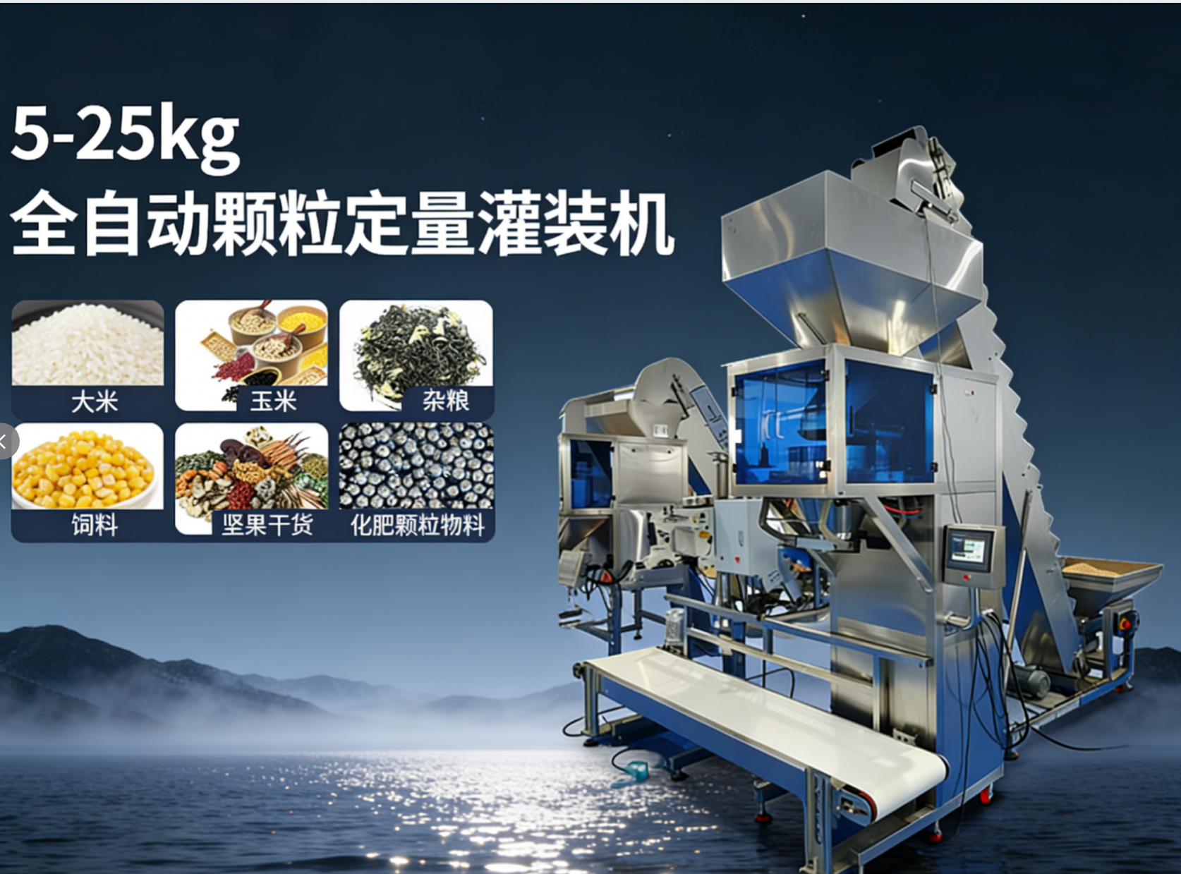 5-25 公斤颗粒灌装机,是专门针对中大型颗粒物料设计的自动化称重灌装一体化设备,完美适配 5-25kg 规格的大袋包装,是食品、饲料、农资等行业规模化生产的核心设备。